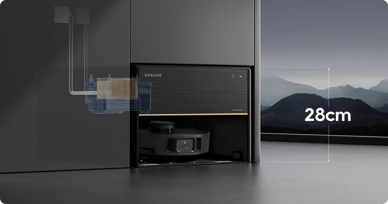 از تمیز کردن جمع و جور، شیک و کاملاً خودکار با پایه جمع و جور 11 اینچی (28 سانتیمتری)* دستگاه X40 Master لذت ببرید، که با محیطهای مدرن هماهنگ میشود و در عین حال کارایی را به حداکثر میرساند.
