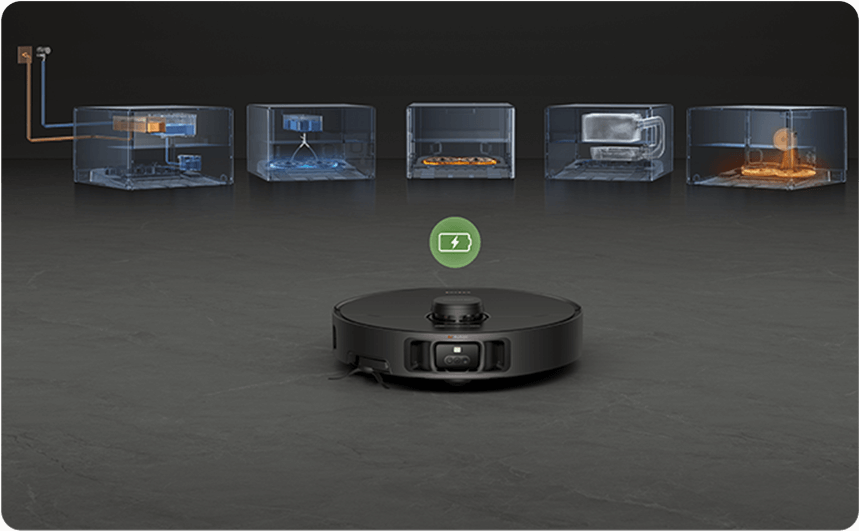با باتری قدرتمند ۶۴۰۰ میلیآمپر ساعتی، X40 Master در حالت استاندارد تا ۱۹۸ دقیقه* جاروبرقی و تی میکشد. این دستگاه با یک بار شارژ تا ۳۰۸ متر مربع (۳۳۱۵ فوت مربع) را به صورت خودکار پوشش میدهد.** به علاوه، وقتی باتری کم میشود، به طور یکپارچه برای شارژ مجدد به داک برمیگردد و تمیز کردن را از جایی که متوقف شده بود، از سر میگیرد.